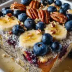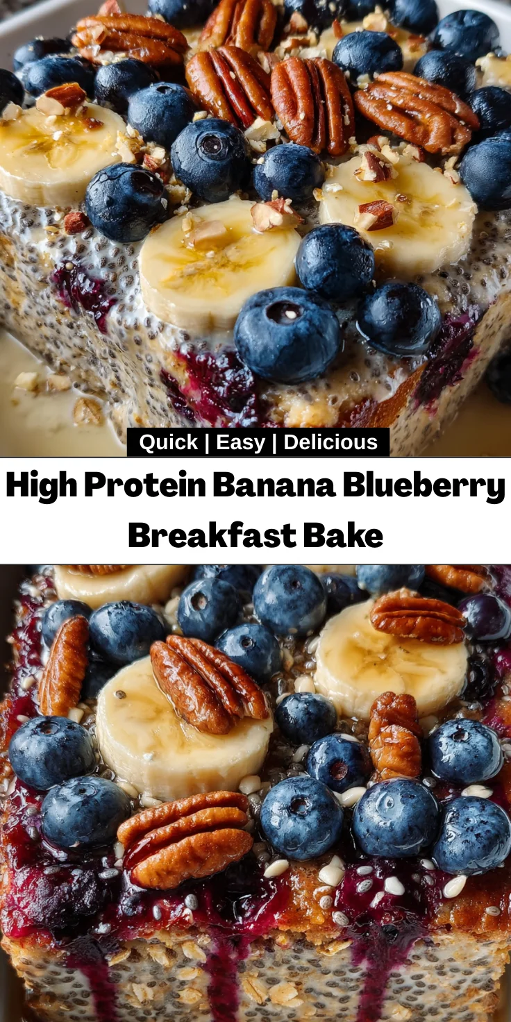 A delicious and nutritious breakfast bake packed with protein from Greek yogurt and chia seeds, filled with the goodness of bananas and blueberries.