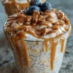 Now for the fun part—let’s serve and enjoy! Grab your overnight oats from the fridge and give them a good stir to wake them up. Carefully transfer each portion into a serving bowl. Drizzle the cream cheese mixture right on top, allowing it to cascade like frosting. For a final flourish, sprinkle a tad more ground cinnamon for that warm touch. It’s all about presentation! Dig in and savor each spoonful of your High-Protein Cinnamon Roll Overnight Oats. You’ve earned this delicious treat!