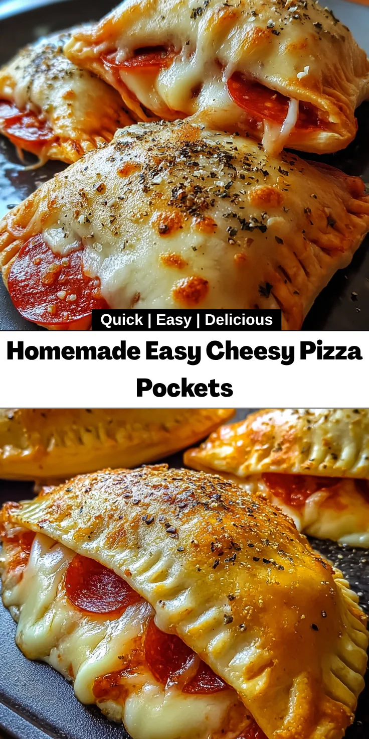 Making Homemade Easy Cheesy Pizza Pockets has been one of the most joyful culinary adventures in my kitchen. The smell of baking dough and melting cheese fills the air, creating a cozy atmosphere that feels like a warm hug. Every pocket is a little burst of happiness, perfect for family gatherings or a quick snack. This recipe brings us together, opening doors to laughter and enjoyment around the table. So, whether you’re cooking solo or involving the kids, these delightful pockets will sprinkle some joy into your day—one cheesy bite at a time!