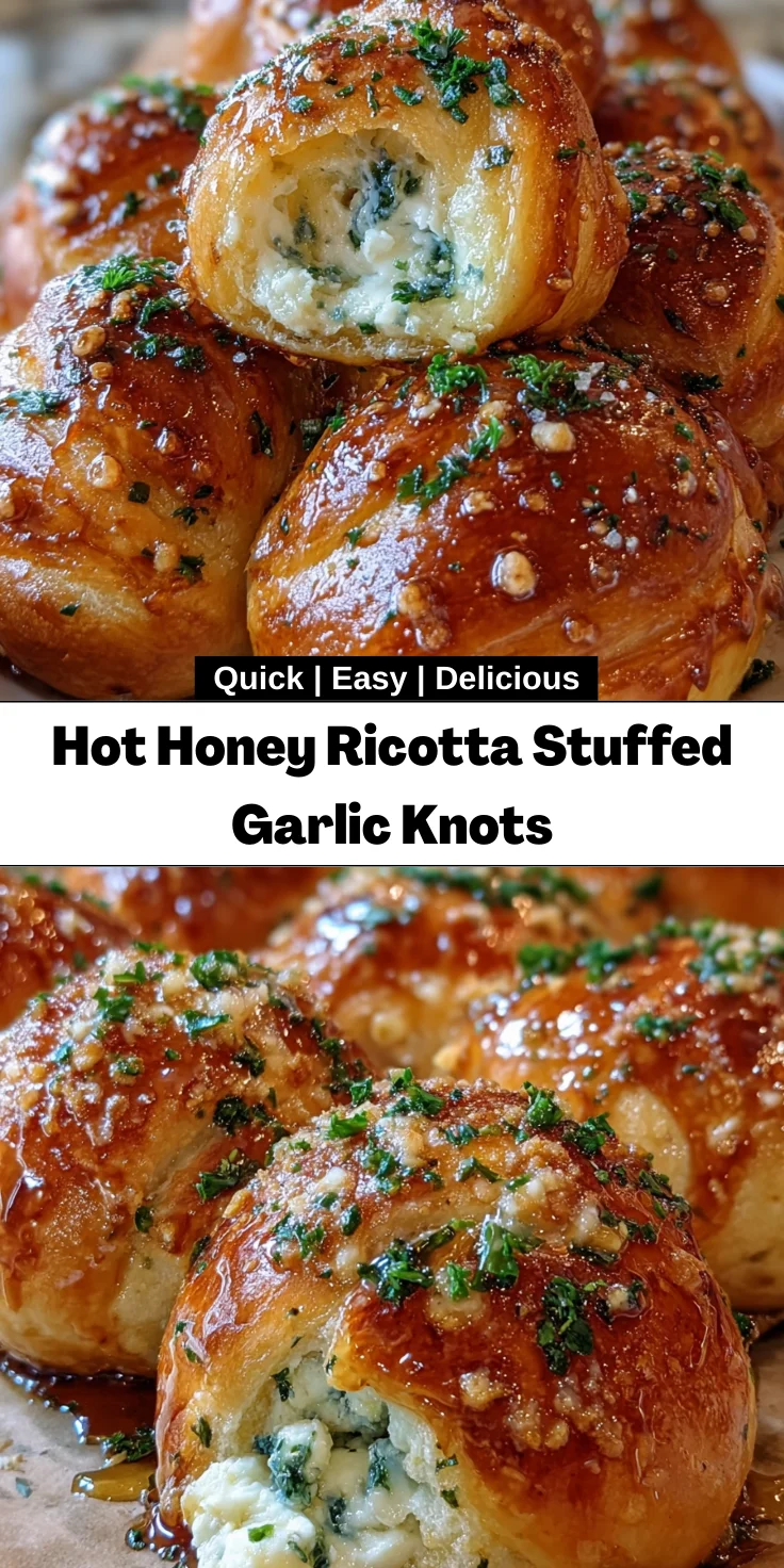 Creating these Hot Honey Ricotta Stuffed Garlic Knots is more than just a cooking project; it’s an experience filled with warmth and flavor. Nothing compares to the joy of pulling those golden knots from the oven, the aroma wrapping around you like a cozy hug. Whether you’re gathering with loved ones or enjoying a quiet evening, these knots add a touch of magic to the moment. Each bite is a delightful blend of creamy and spicy, and I’m sure they will become a beloved recipe in your kitchen, just as they have in mine. Happy cooking!