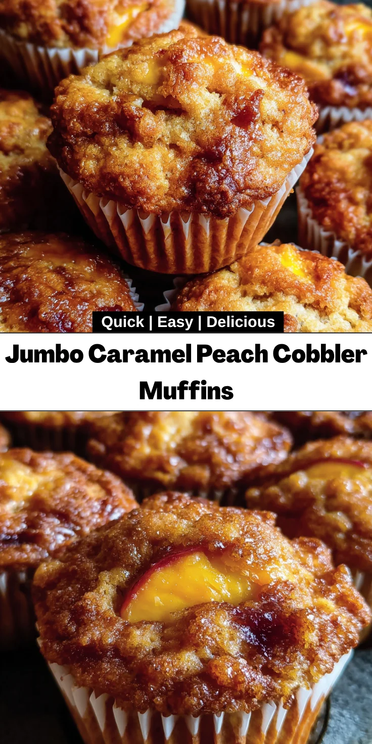 Jumbo Caramel Peach Cobbler Muffins are a delicious combination of sweet peaches and caramel flavors, baked to perfection for a delightful treat.