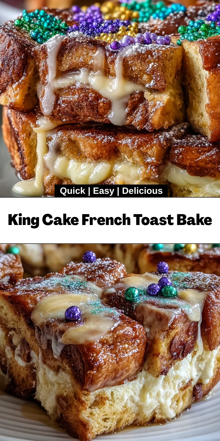 This King Cake French Toast Bake is not just a dish; it’s a warm hug on a plate! It’s surprisingly easy to whip up, making it ideal for busy mornings or special occasions. Your kitchen will be filled with mouthwatering aromas, and the delightful combination of cream cheese and cinnamon will leave everyone asking for seconds. Plus, it looks stunning with that festive icing! What’s not to love?