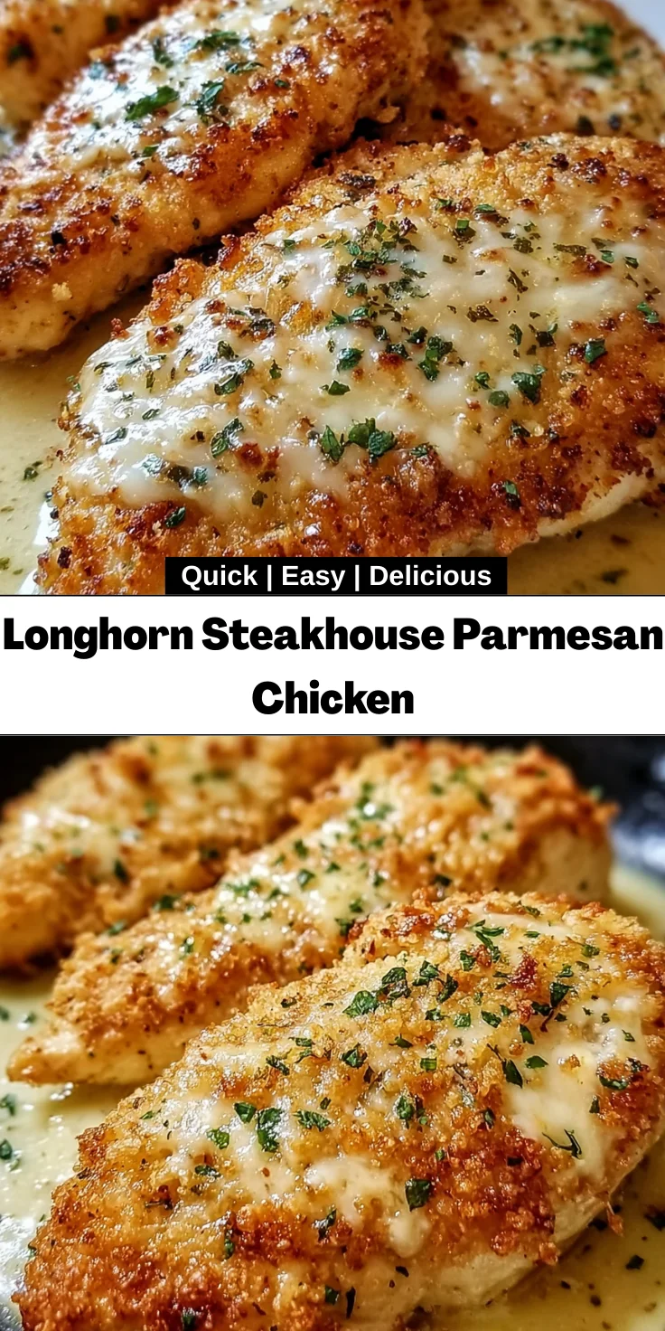 A delicious and easy-to-make Parmesan chicken recipe inspired by Longhorn Steakhouse.