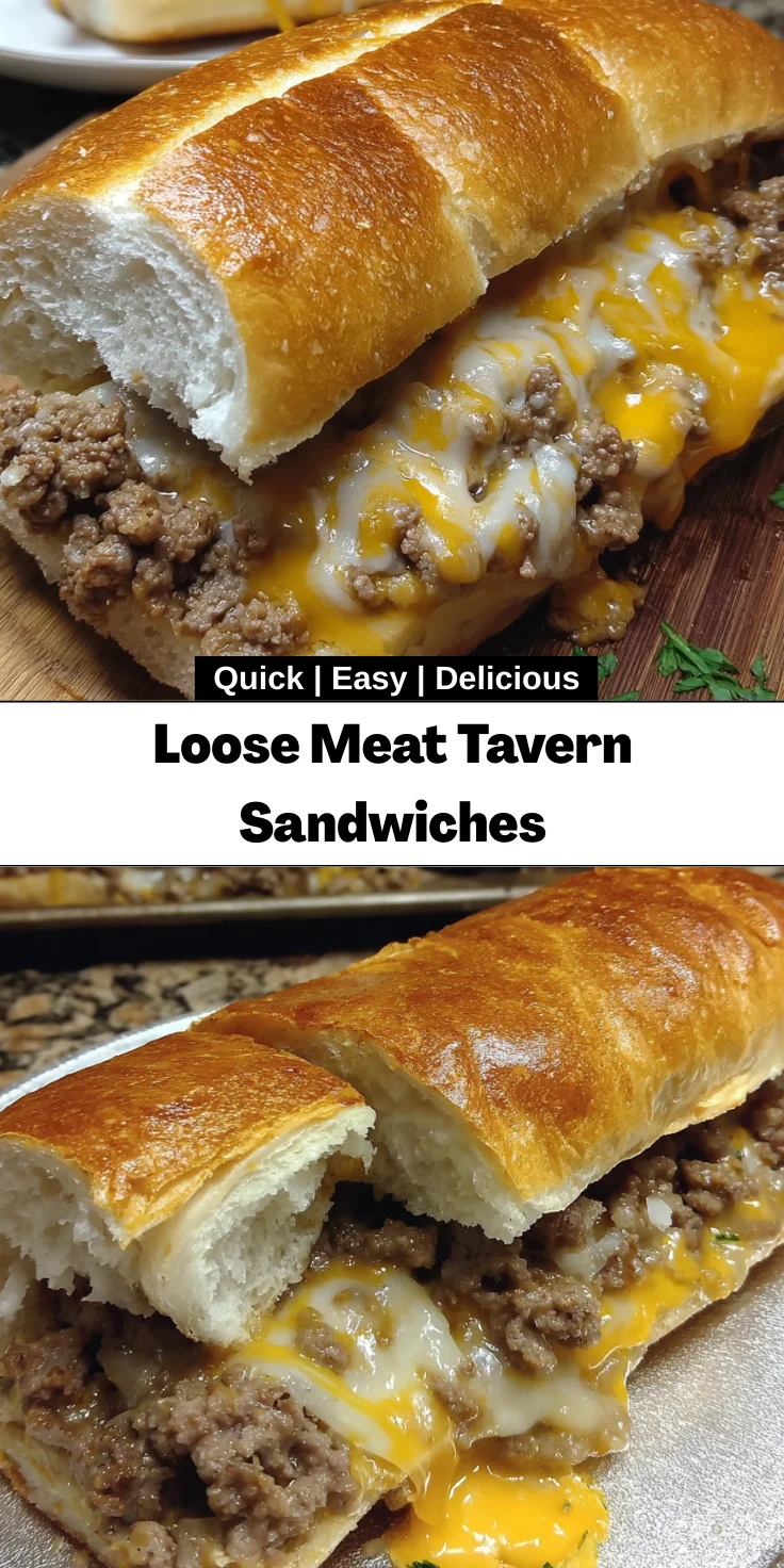 Loose Meat Tavern Sandwiches are a hearty and flavorful sandwich made with ground beef, cheese, and spices, served in soft French bread.