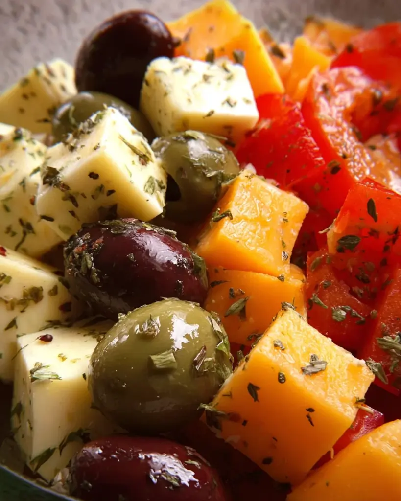Delighting in the vibrant flavors of marinated cheese and olives is a treat for both the senses and the soul. This recipe embodies the joy of effortless entertaining and can turn any gathering or quiet moment into something special. The act of mixing together fresh ingredients feels like painting a canvas of flavor. Each bite transports you to sun-kissed Mediterranean shores, reminding us all of life’s simple pleasures. Whether it’s for a family gathering or a cozy night in, this dish warms the heart and sparks laughter, making it an unforgettable addition to your culinary repertoire.