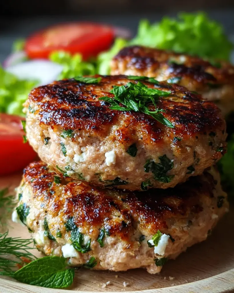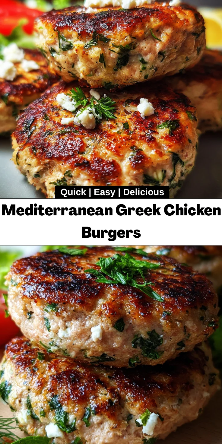 Delicious Mediterranean Greek Chicken Burgers infused with fresh herbs and creamy feta cheese, perfect for a flavorful meal.