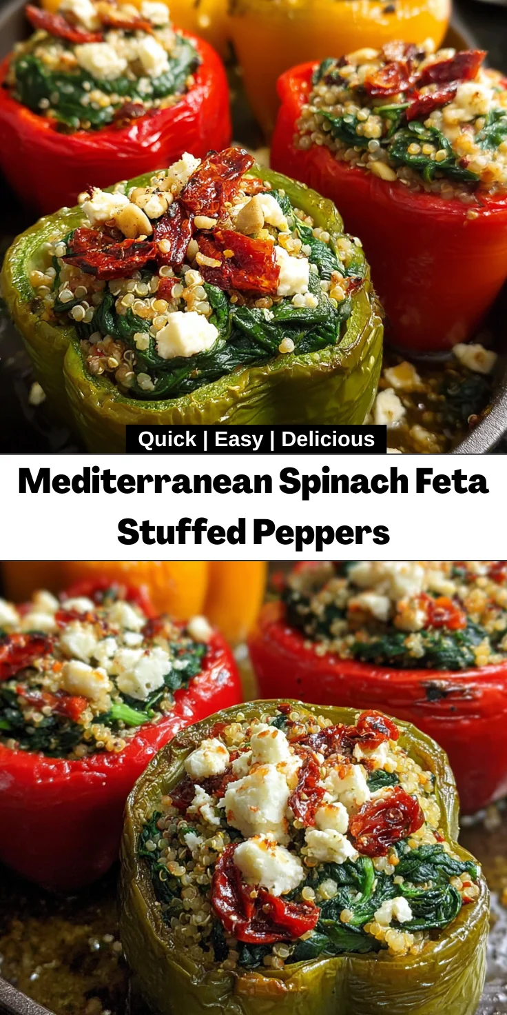 Cooking should be a joyful adventure, and my Mediterranean Spinach Feta Stuffed Peppers embody just that. They combine vibrant flavors, wholesome ingredients, and an easy prep process that fits neatly into our busy lives. Each bite brings comfort and warmth, making it a true crowd-pleaser at the dinner table. Whether it’s a cozy family night or a small gathering with friends, these peppers promise to delight everyone. So, gather your ingredients, roll up your sleeves, and let the magic happen in your kitchen. You’ll soon find this recipe becoming a cherished favorite in your meal rotation!