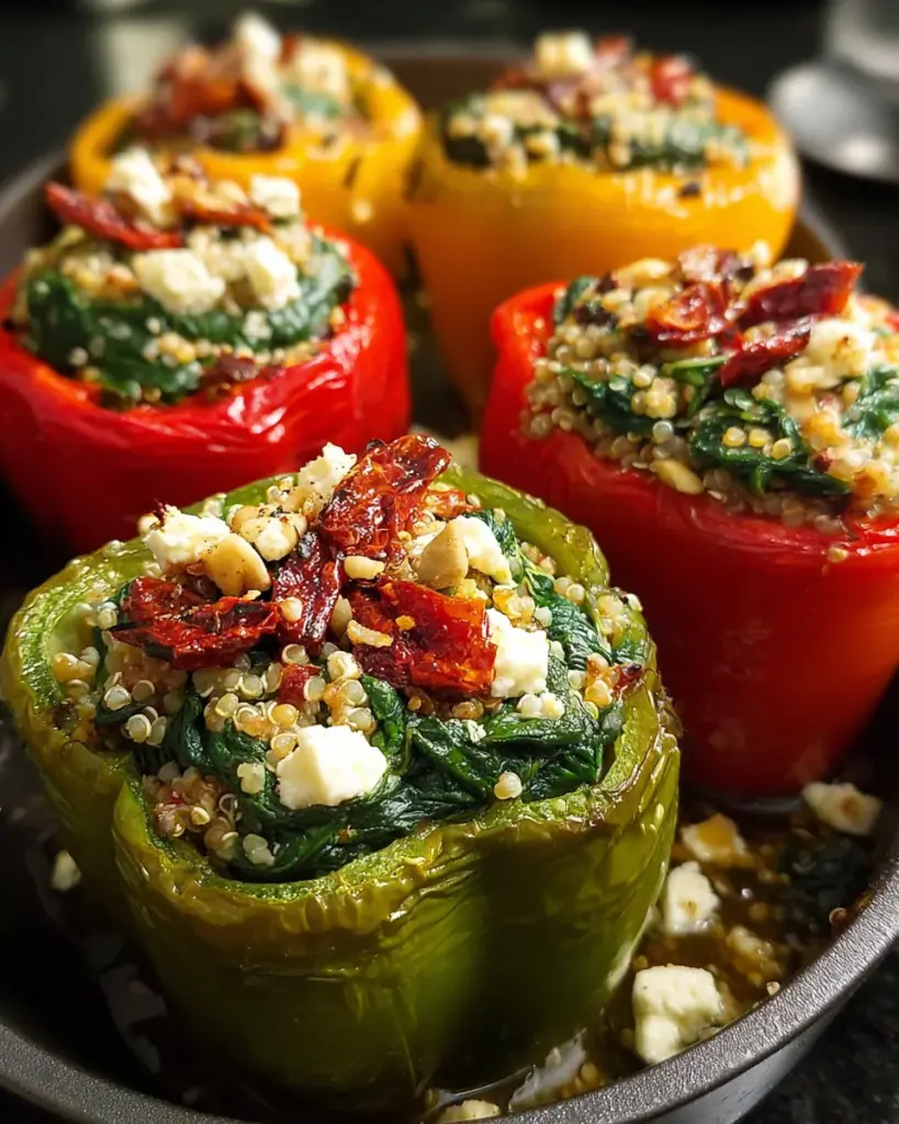 A healthy and delicious recipe for Mediterranean Spinach Feta Stuffed Peppers filled with nutritious ingredients.