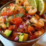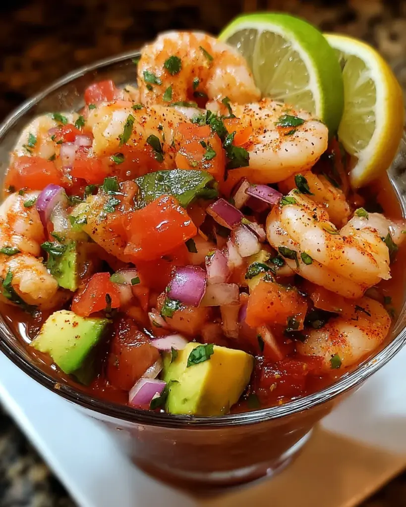 A refreshing Mexican shrimp cocktail with zesty flavors, perfect for a light appetizer or snack.