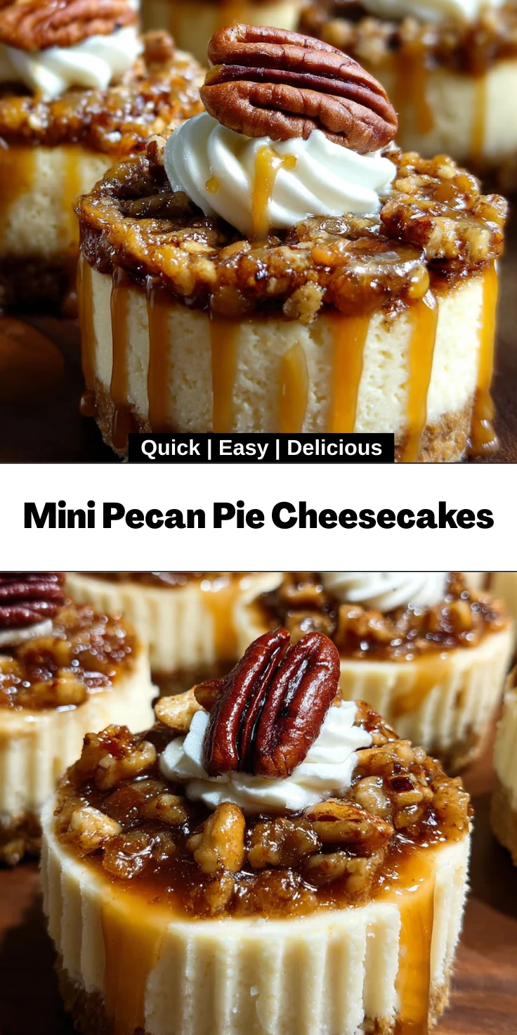 Mini Pecan Pie Cheesecakes are a delightful combination of classic pecan pie and creamy cheesecake, perfect for satisfying your sweet tooth.