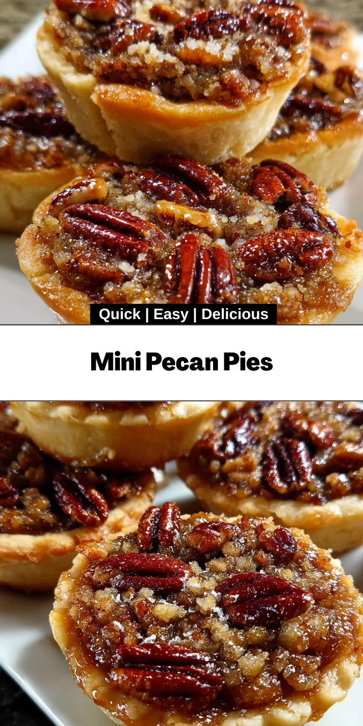 Mini Pecan Pies are delicious bite-sized desserts featuring a buttery shortbread crust filled with a rich pecan pie filling.