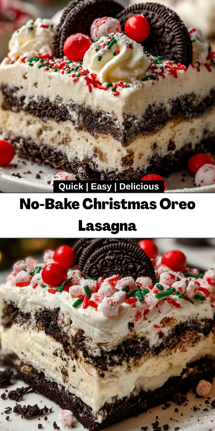 This No-Bake Christmas Oreo Lasagna is more than just a dessert; it’s a celebration of joy and togetherness. With its creamy layers and delightful crunch, it perfectly captures the festive spirit of the season. Plus, its effortless preparation means you can focus on making memories with loved ones instead of spending hours in the kitchen. Whether it graces your holiday table or becomes a new family tradition, this dessert will undoubtedly impress your guests and leave them asking for the recipe. So, slice away, enjoy every bite, and bask in the warmth of the holiday season!
