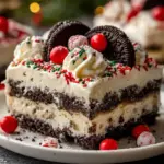 A delightful and festive no-bake dessert combining layers of creamy goodness and Oreo cookies, perfect for Christmas celebrations.
