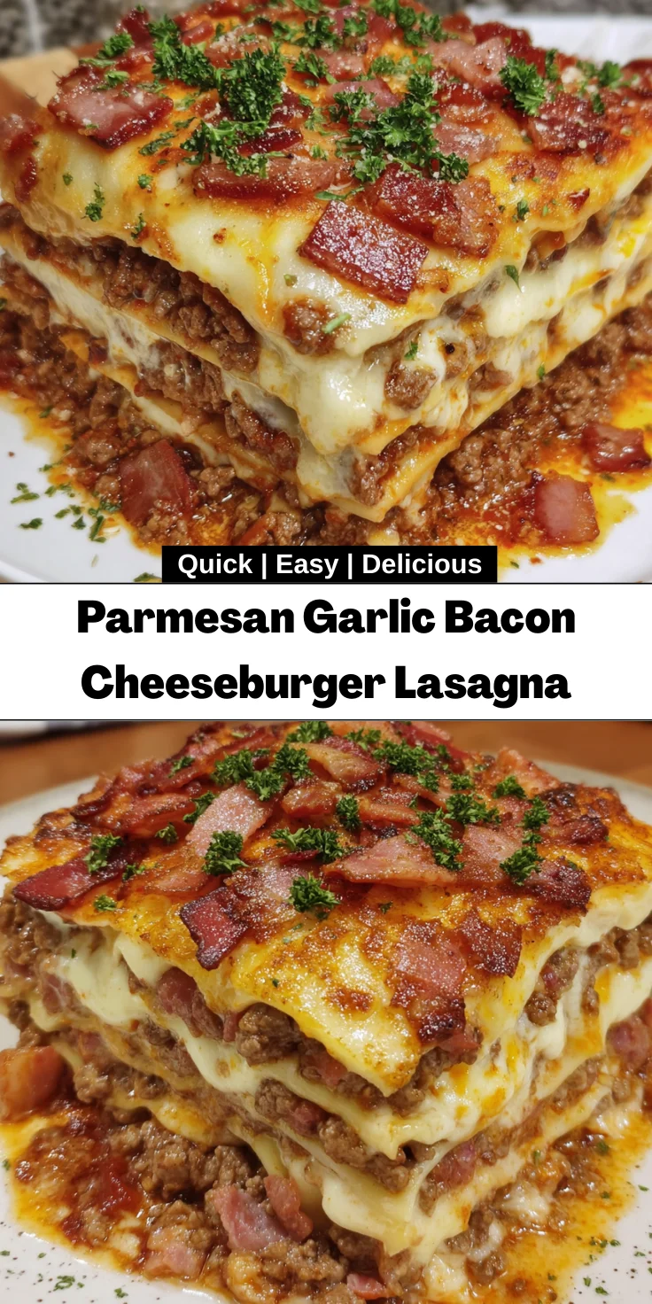 Parmesan Garlic Bacon Cheeseburger Lasagna—a delightful twist on a classic favorite! As a busy mom, I know how