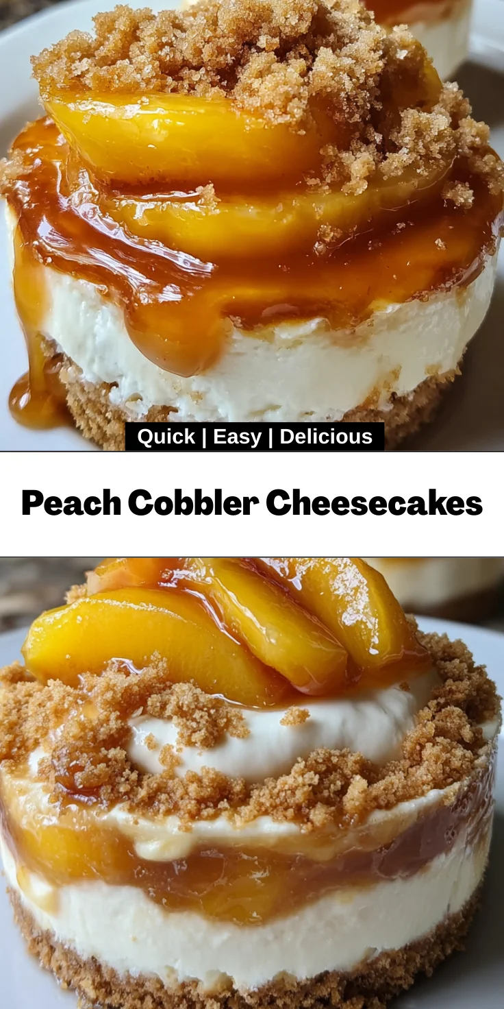 Making Peach Cobbler Cheesecakes is a joyful culinary adventure that brings the taste of summer into your home. Every bite feels like a warm embrace, combining the creamy richness of cheesecake with the nostalgic sweetness of peach cobbler. It’s a dessert that not only satisfies your sweet tooth but also creates lasting memories with family and friends. Plus, with its ease and delightful flavors, it’s the perfect way to elevate any gathering or cozy night in. So, roll up your sleeves and dive into this delightful dessert—it’s time to treat yourself and those you love!