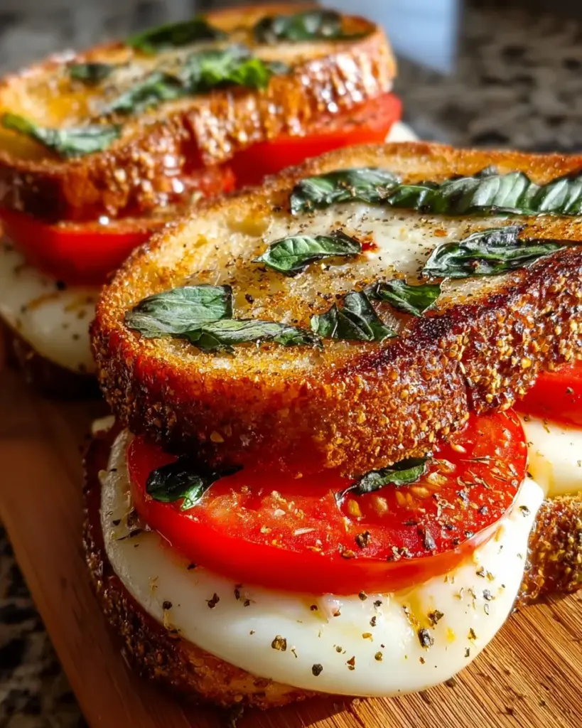 Picture this: a perfect blend of creamy mozzarella, fresh tomatoes, and fragrant basil, all nestled between crispy slices of sourdough.