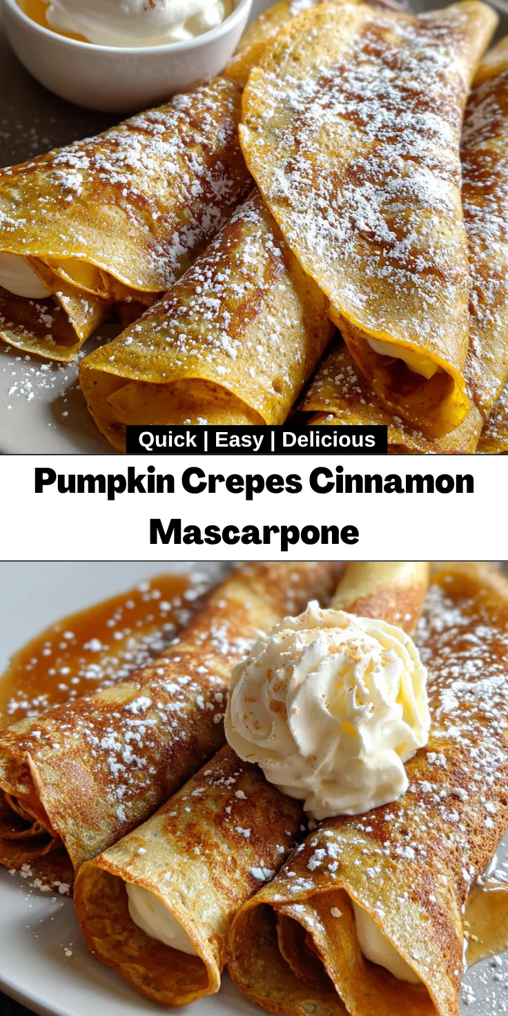 Creating these Pumpkin Crepes Cinnamon Mascarpone isn’t just about filling your belly; it’s about crafting memories with your loved ones. As the warm flavors swirl around your kitchen, you’ll find yourself transported to cozy autumn mornings. Watching your family’s faces light up as they take their first bite makes all the effort worthwhile. Plus, this recipe offers so much flexibility. Whether it’s for an indulgent breakfast or a delightful dessert, these crepes are sure to bring joy to any table. So, roll up your sleeves and get ready for a delicious adventure in every bite!