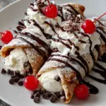 - Assemble Wraps: Place a scoop of vanilla ice cream in the center of each warmed tortilla. Drizzle with chocolate sauce and sprinkle with mini chocolate chips.