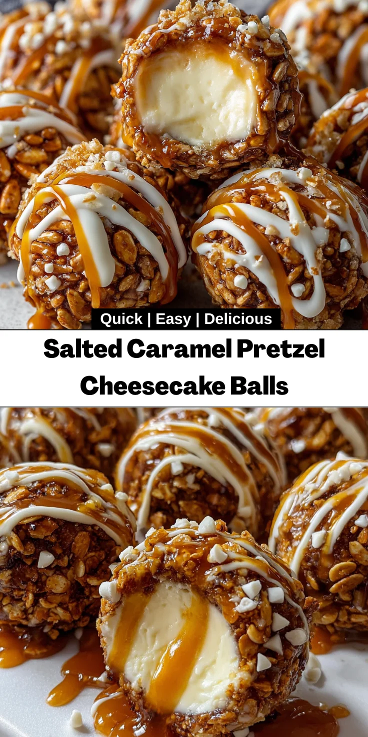 Delicious Salted Caramel Pretzel Cheesecake Balls combining the creaminess of cheesecake with the crunch of pretzels and the sweetness of caramel