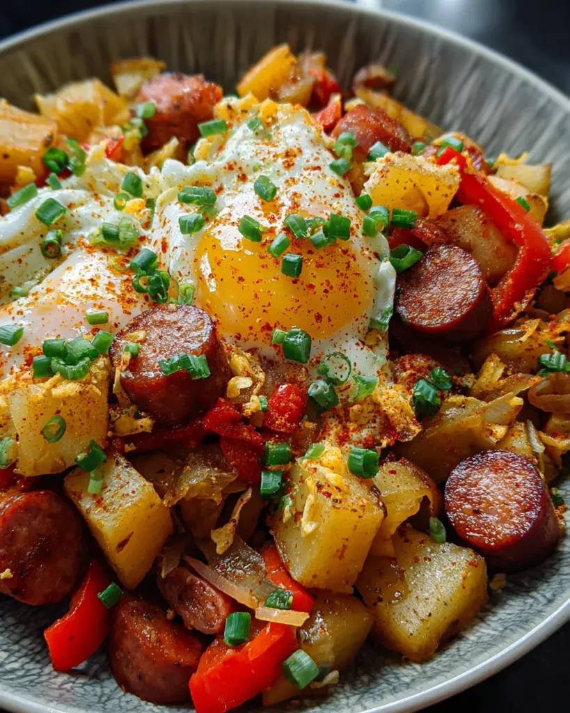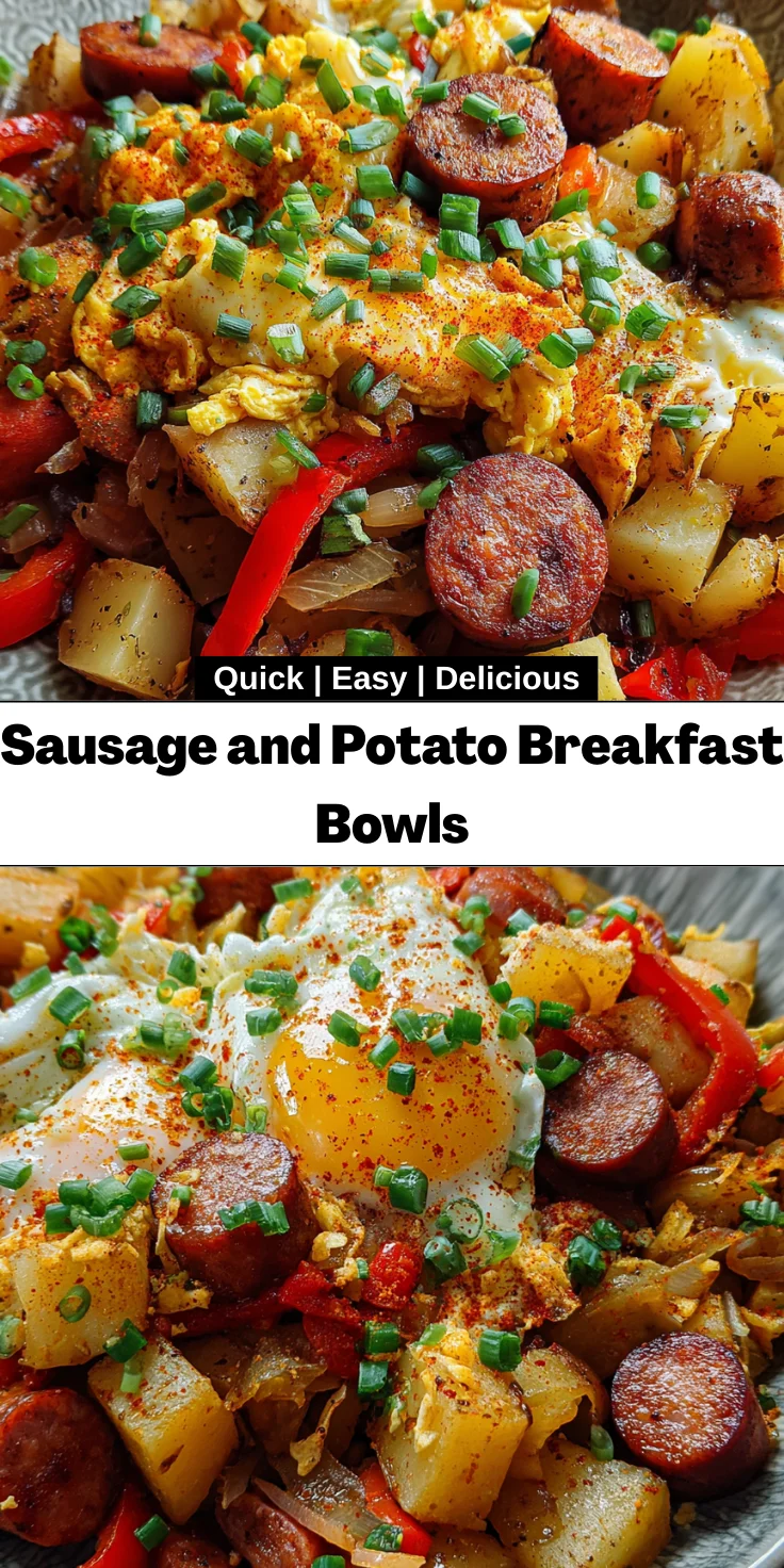 Sausage and Potato Breakfast Bowls are a delicious start to your day, combining hearty potatoes, savory sausages, fresh vegetables, and eggs.