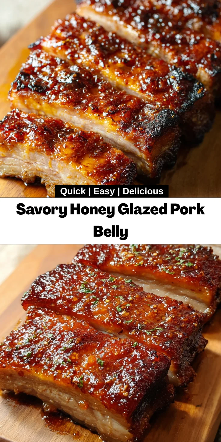 Savory Honey Glazed Pork Belly is a flavorful dish featuring tender pork belly coated in a sweet and savory glaze.