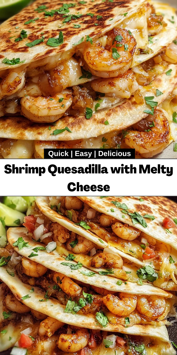 Cooking this Shrimp Quesadilla with Melty Cheese has been a joyful adventure! The ease of preparation, paired with the vibrant flavors, makes it a go-to recipe for any busy day. There’s nothing quite like watching your family savor each melty, cheesy bite, their smiles shining brighter than the warm quesadillas themselves. It’s moments like these—in the comfort of your kitchen with loved ones around—that create lasting memories. I hope this recipe brings as much delight to your home as it has to mine. Dive into this delicious experience and enjoy every cheesy moment!