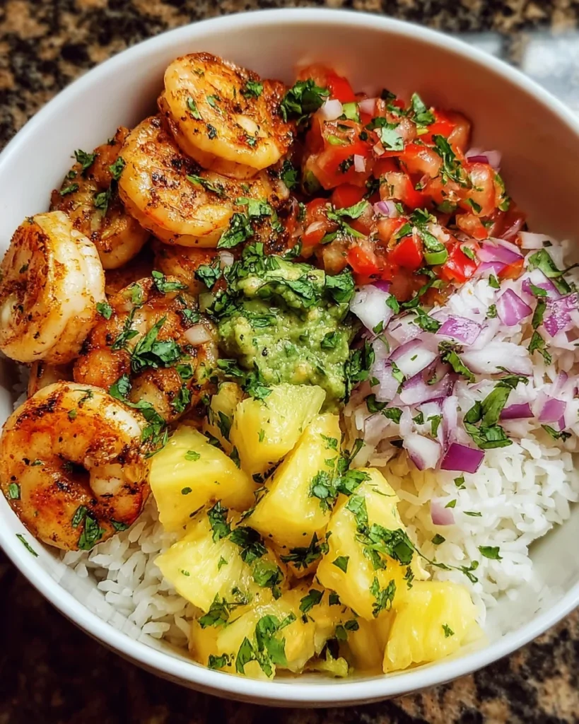 Creating this Shrimp & Rice Bowl with Pineapple Salsa is more than just making dinner; it’s an experience that brings joy to the table. The colorful ingredients come together to form a dish that not only looks fantastic but also explodes with flavor. Each bite transports you to a sunny seaside, making it a mini getaway from your daily routine. It’s perfect for busy evenings, yet impressive enough to share at gatherings. So why not gather your loved ones and dive into this bowl of happiness? I promise it’ll be a memorable meal!