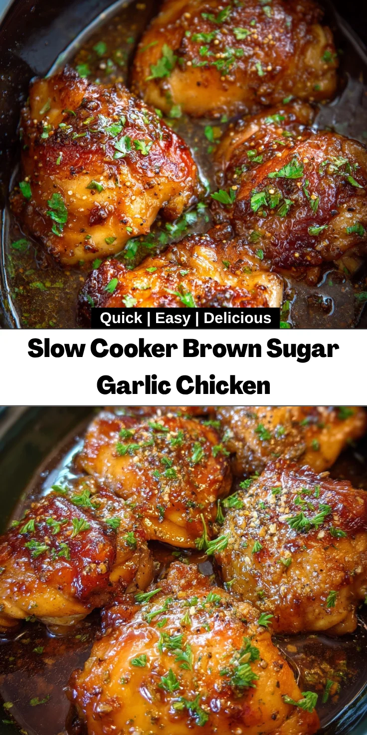 Slow Cooker Brown Sugar Garlic Chicken is a delectable and easy dinner option, featuring tender chicken thighs coated in a sweet and savory brown sugar garlic sauce.