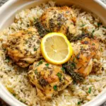 A delicious slow cooker recipe featuring tender chicken thighs cooked with rice, flavored with lemon and herbs.