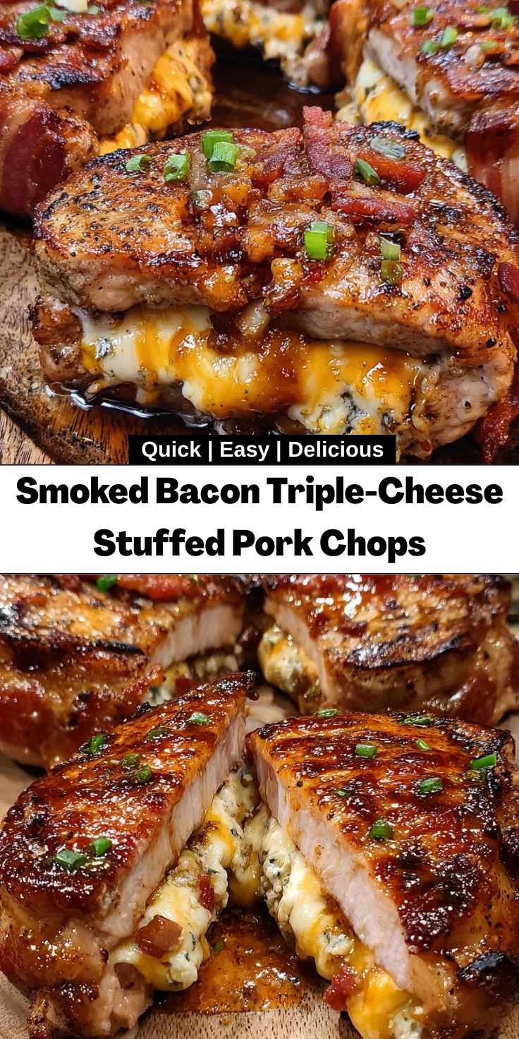 Smoked Bacon Triple-Cheese Stuffed Pork Chops