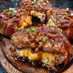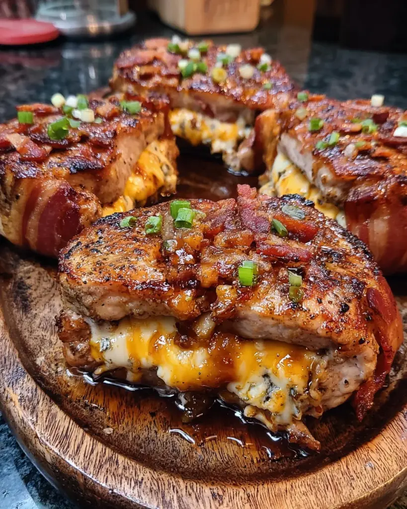 Cooking these Smoked Bacon Triple-Cheese Stuffed Pork Chops is like wrapping your family in a warm, comforting blanket of flavor. The joy of pulling a beautifully baked chop from the oven, with that cheesy melty goodness peeking out, is simply unmatched. This recipe not only brings so much flavor to the table but also creates a wonderful opportunity for connection and conversation during mealtime. Whether it’s a busy weeknight or a special family gathering, these stuffed chops will surely leave everyone smiling, craving for more, and celebrating the magic of homemade cooking!