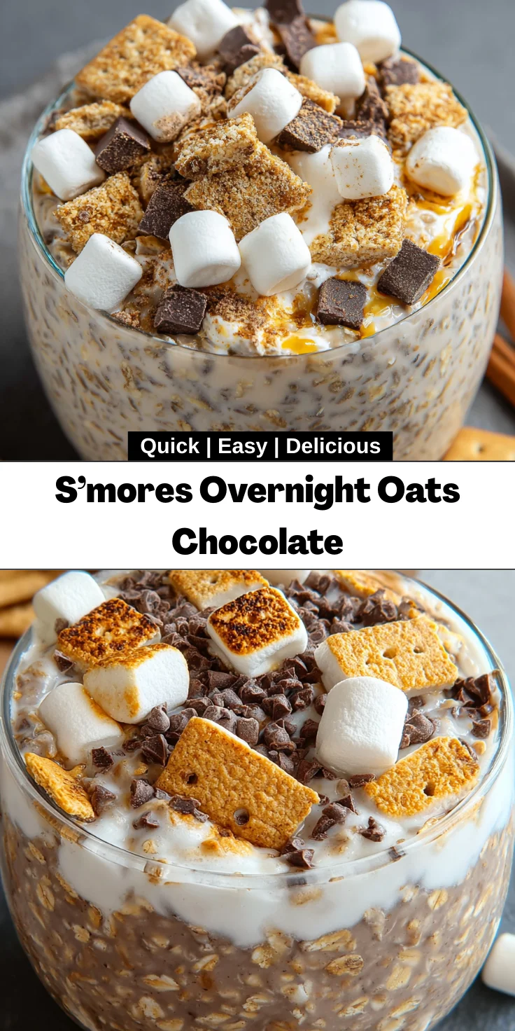 A delicious and creamy overnight oats recipe inspired by the classic s’mores treat, perfect for breakfast or dessert.
