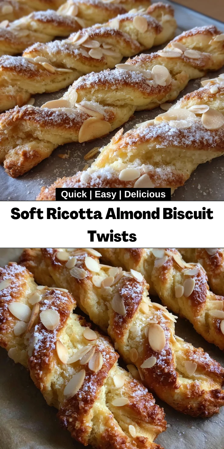 Creating these Soft Ricotta Almond Biscuit Twists is not just about making a treat; it’s about crafting moments that linger in our hearts. They melt in your mouth, offering joy in every bite, making them perfect for sharing with family or savored in quiet solitude with a cup of tea. Whether it’s the end of a busy day or a celebration, these biscuits bring a sense of comfort and happiness. I truly hope they inspire you in your kitchen and brighten your days just as they’ve done for me! Happy baking, my friends!