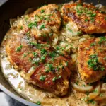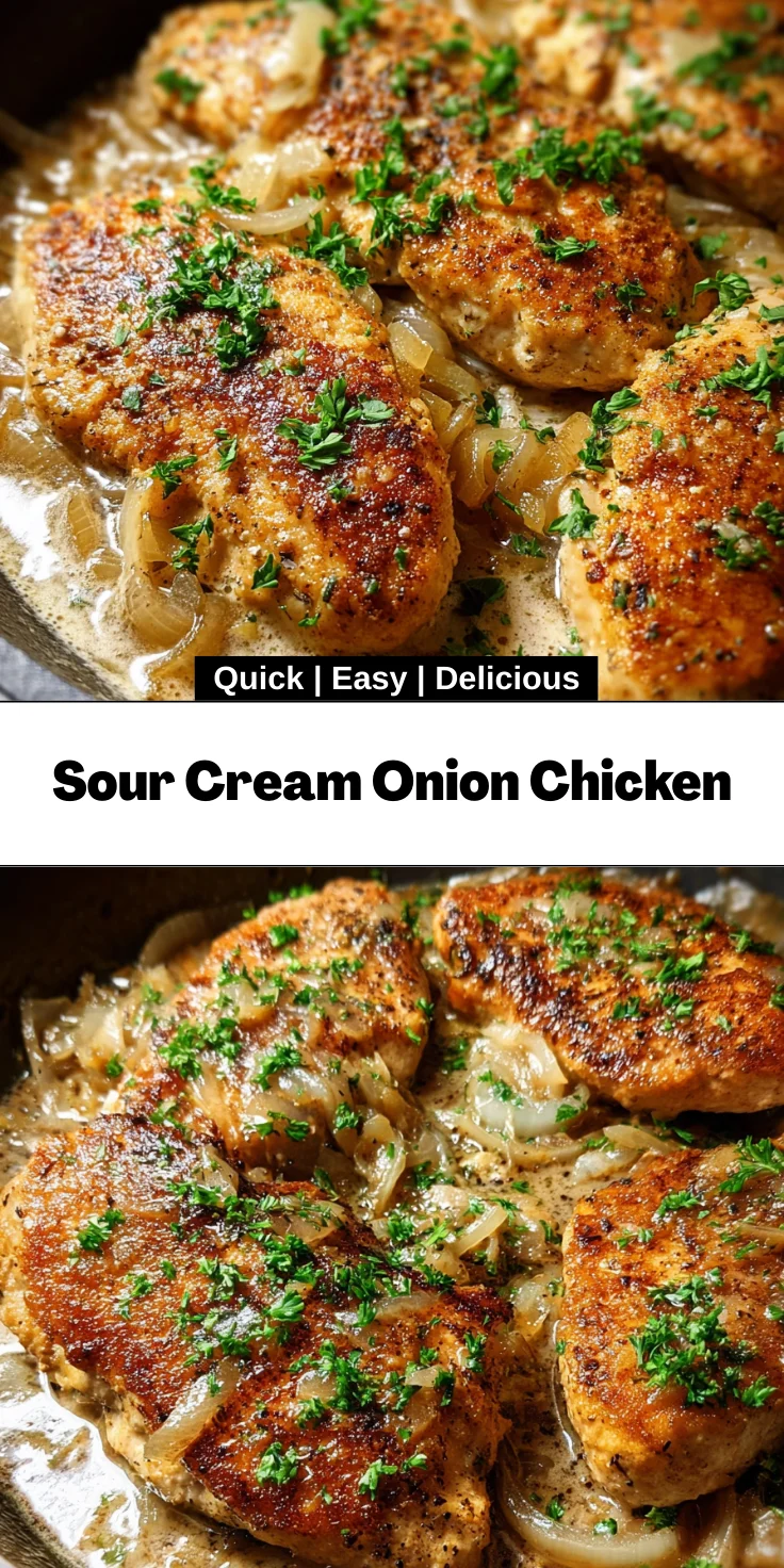 A creamy and savory chicken dish featuring tender chicken breasts smothered in a rich sour cream and onion sauce.