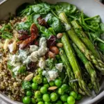 Here’s the fun part! Take bowls and divide the cooked grains among them. Top each bowl with your colorful blanched peas, asparagus, green beans, and sautéed spinach. Now, drizzle the zesty lemon dressing generously over the top. For added crunch, sprinkle with toasted pumpkin or sunflower seeds, and if you like, add crumbled feta cheese for a creamy touch. Finally, toss some fresh herbs on top to elevate your dish’s flavor. Serve immediately and enjoy the spring vibes!