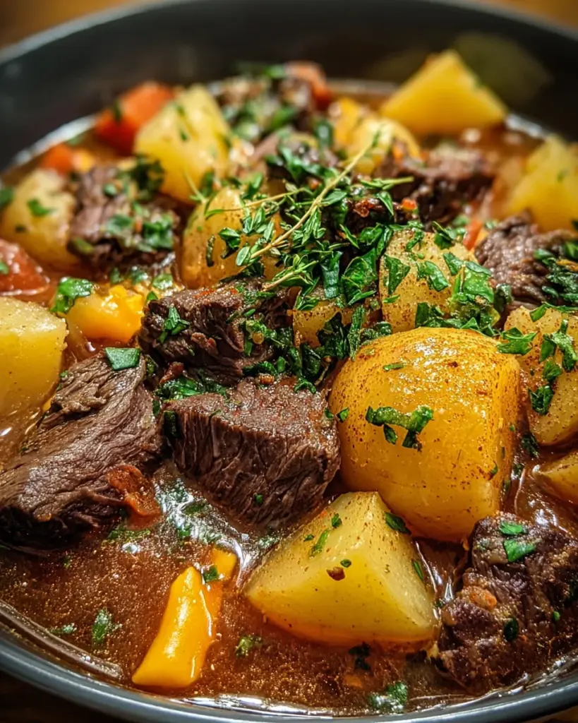 During this time, the beef will become fall-apart tender, and the potatoes will soak up all that savory goodness.