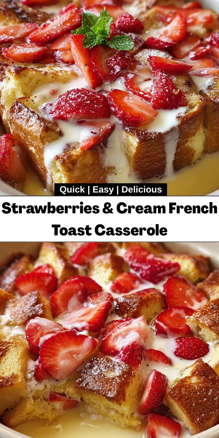 Ah, the joy of waking up to a delightful breakfast! There’s something incredibly comforting about a dish that feels both indulgent and homey. My Strawberries & Cream French Toast Casserole is just that—a dish that will make your mornings feel a little more special. Perfect for busy weekends or casual brunches, this casserole combines layers of soft, buttery bread with the sweetness of fresh strawberries and a rich, creamy custard. It’s easy to prepare and bake, allowing you to spend quality time with loved ones while it bakes. Trust me; you’ll want to make this a family tradition!