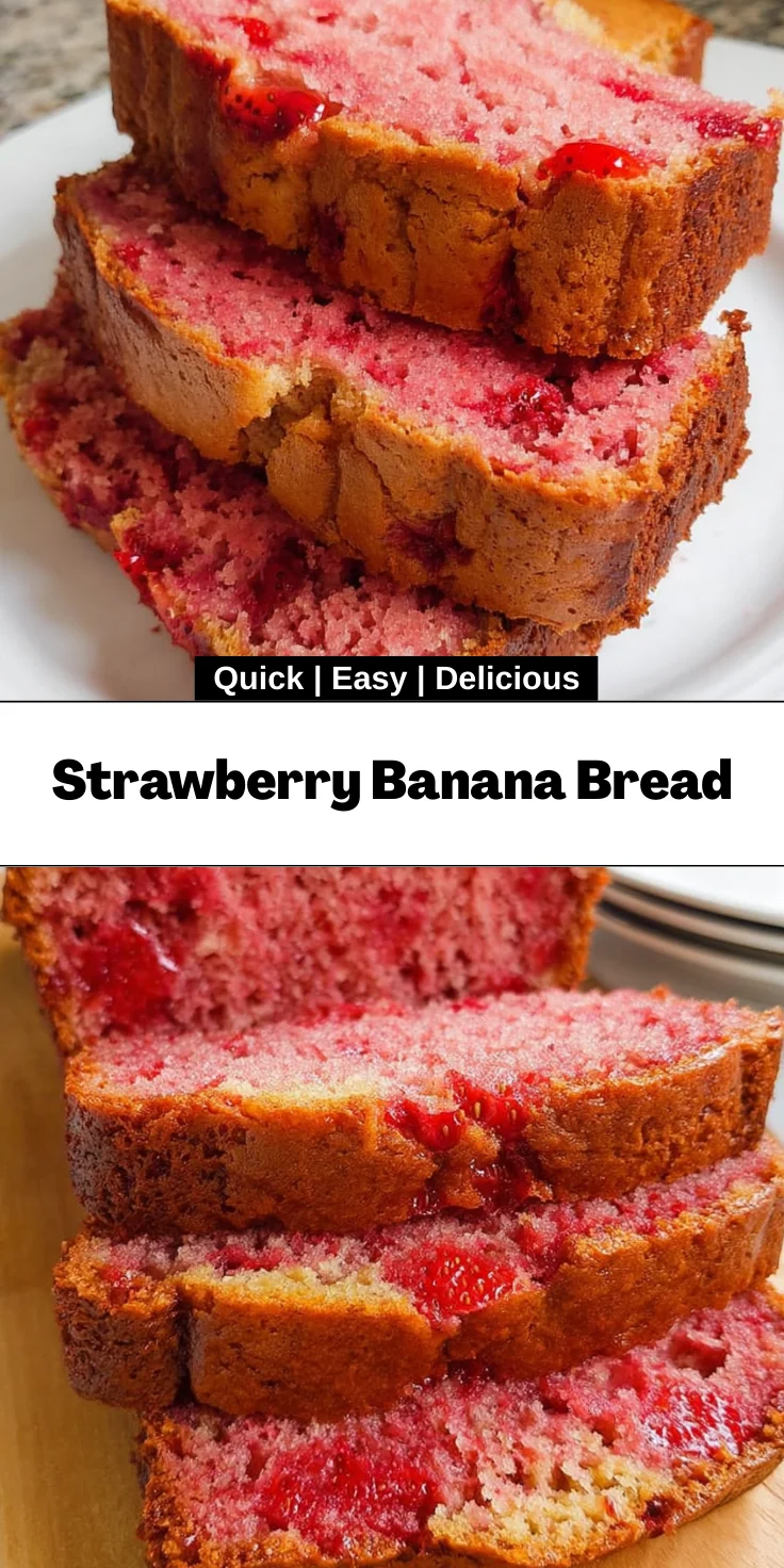 Strawberry Banana Bread is a moist and delicious treat made with ripe bananas and fresh strawberries, perfect for breakfast or a snack.