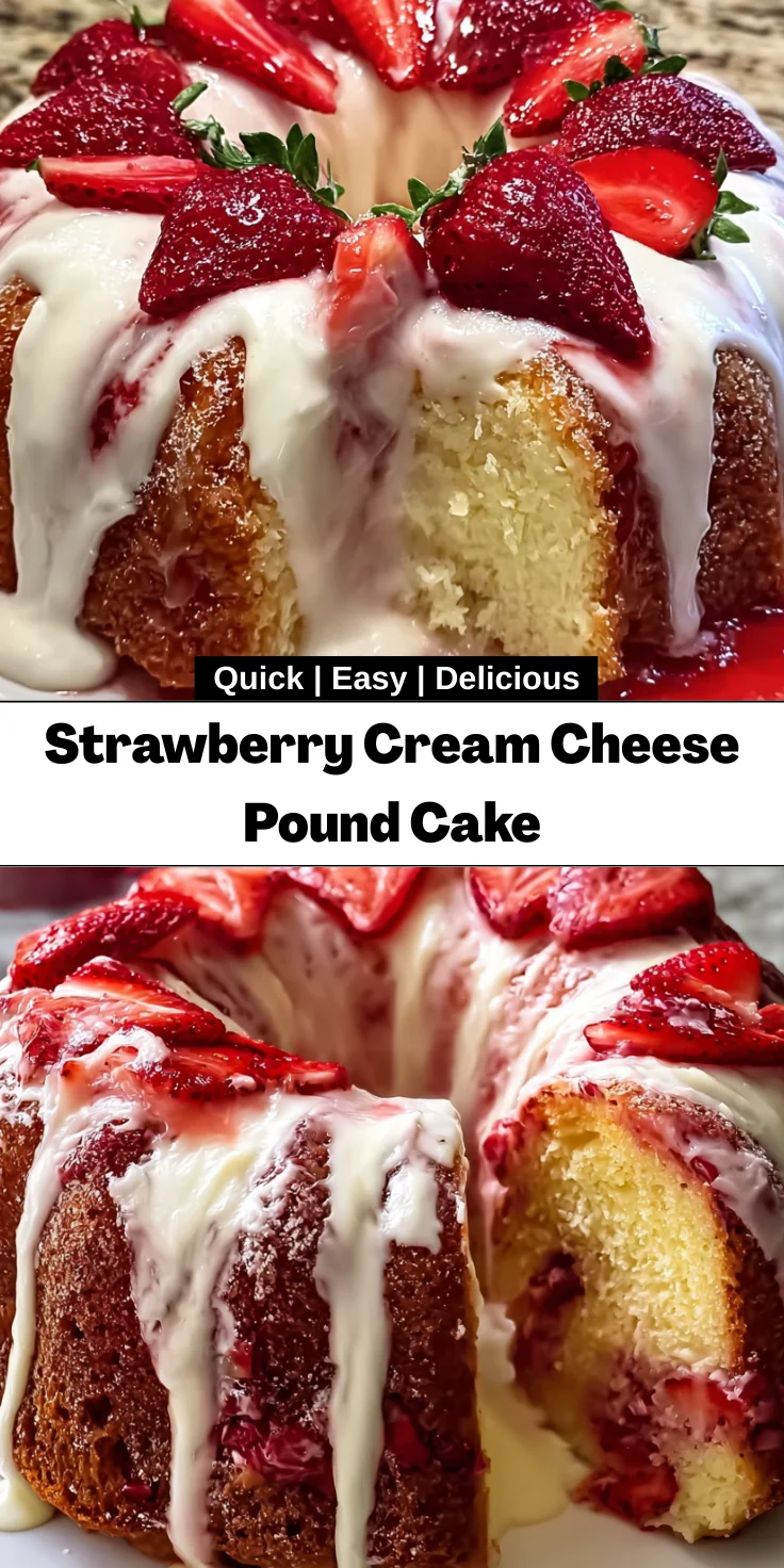 There’s something simply magical about a homemade cake, and this Strawberry Cream Cheese Pound Cake is no exception! Imagine walking into your kitchen and being greeted by the sweet aroma of strawberries and buttery goodness. As a busy mom, I know that finding time for baking can feel overwhelming, but trust me, this recipe is both forgiving and rewarding. It’s the perfect dessert for any occasion, whether it’s a weekend treat or something to share at a gathering. You’ll love the moist texture and that luscious glaze—it truly is a slice of bliss!