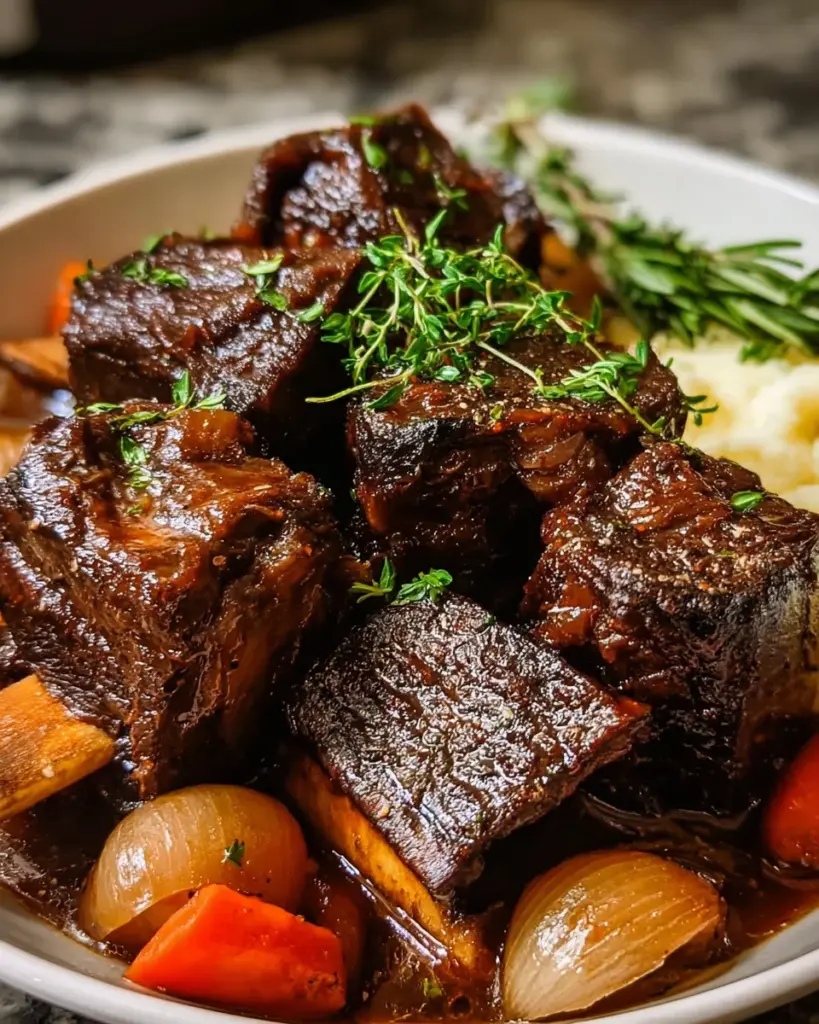 A delicious and easy recipe for super tender beef short ribs cooked in a crockpot, perfect for a comforting dinner.