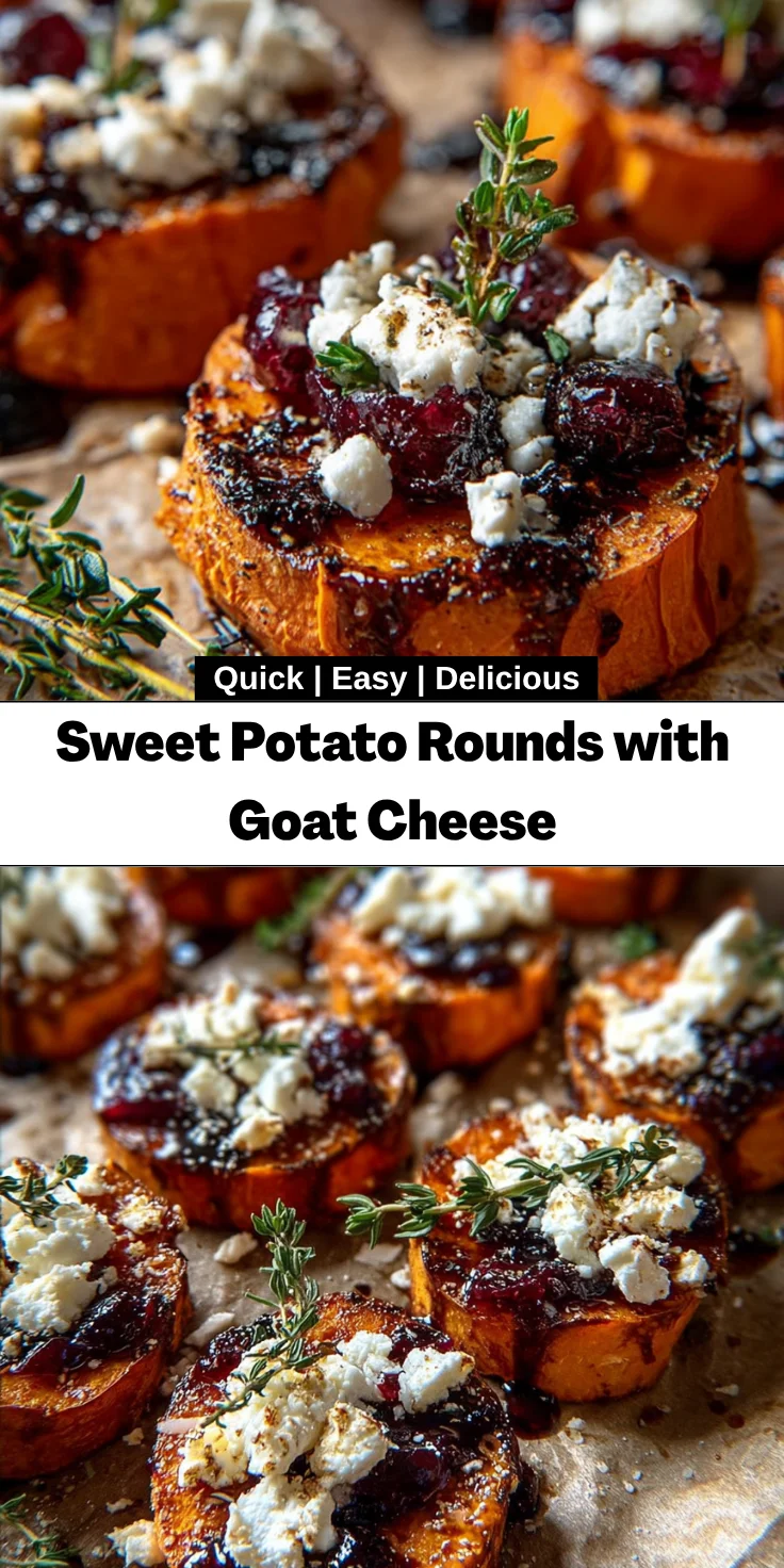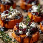 Cooking these Sweet Potato Rounds with Goat Cheese & Cranberry Balsamic Glaze has been a delightful experience, blending flavors that truly dance on the palate. There’s something magical about how the creamy goat cheese meets the tangy-sweet glaze, all resting on a tender sweet potato base. Whether you’re hosting friends or enjoying a quiet evening at home, these bites are sure to bring smiles and warm hearts. I hope this recipe adds a sprinkle of joy to your gatherings and inspires a touch of creativity in your kitchen adventures. Happy cooking!
