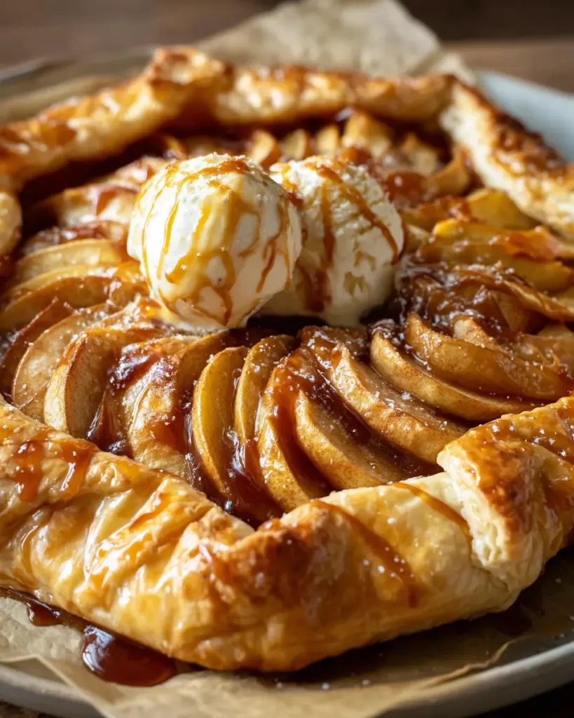 A delicious and easy-to-make apple galette featuring a flaky puff pastry crust and spiced apple filling.