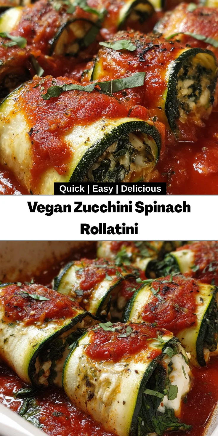 Making this Vegan Zucchini Spinach Rollatini brings me immense joy and satisfaction. It’s more than just a meal; it’s a comforting hug on a plate that warms both the heart and the belly. Watching my loved ones dive into these delicious rolls fills me with pride. With vibrant flavors, nutritional benefits, and the appeal of a home-cooked dish, it’s a recipe I cherish. I hope you experience the same delight in crafting and savoring this dish! Gather your loved ones around the table, and let this beautiful rollatini be the star of your next gathering!
