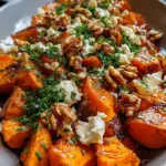 As soon as the tray comes out of the oven, it’s time for the final touch—crumbled goat cheese! Scatter it generously over the warm sweet potato and walnut mixture. The heat will gently soften the cheese, creating a lovely creamy texture. For an added pop of freshness, toss on some finely chopped fresh parsley right before serving. Trust me; it’s the finishing touch your dish deserves!
