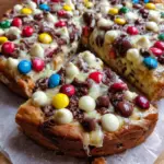A deliciously indulgent dessert that combines the rich flavors of chocolate brownies with the fun presentation of a pizza, topped with white chocolate and M&M’s.