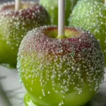 While the candy coating is still tacky, it’s time to add that magical touch! Dust each apple with edible pearl dust or sprinkle on some white sparkle edible glitter. This will give your apples that beautiful shine and irresistible charm. Let them cool completely on the tray until the coating hardens. I love watching them transform—each sparkle making them look even more enticing! Once cooled, they’re ready to be shared with family and friends.